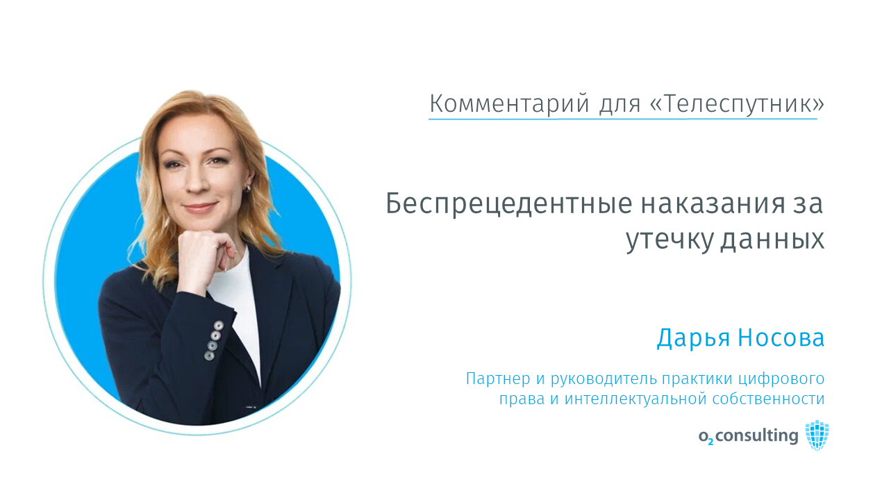 Дарья Носова, партнер и руководитель практики цифрового права и интеллектуальной собственности, поделилась своим мнением о причинах и последствиях усиления юридической ответственности за неправомерную передачу информации, включающей персональные данные, а также об основном инструменте в борьбе с утечками персональных данных в статье «Телеспутника».
