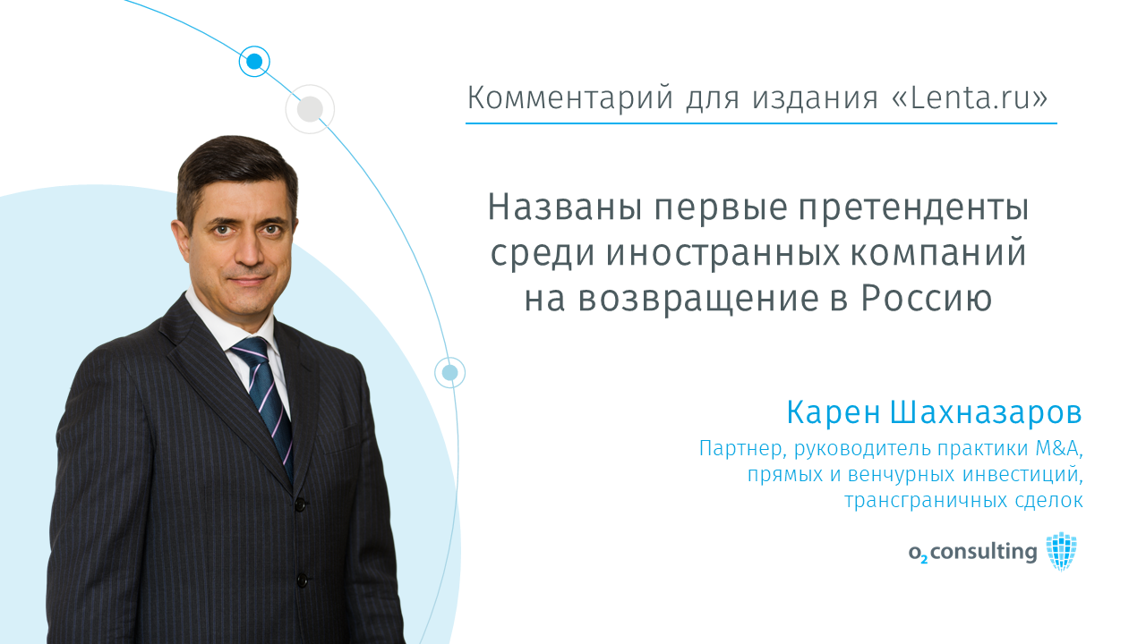 Карен Шахназаров, партнер, руководитель практики M&A, прямых и венчурных инвестиций, трансграничных сделок O2 Consulting, дал развернутый комментарий специально для новостного издания «Lenta.ru» о возможном возвращении иностранных компаний после отмены санкций: