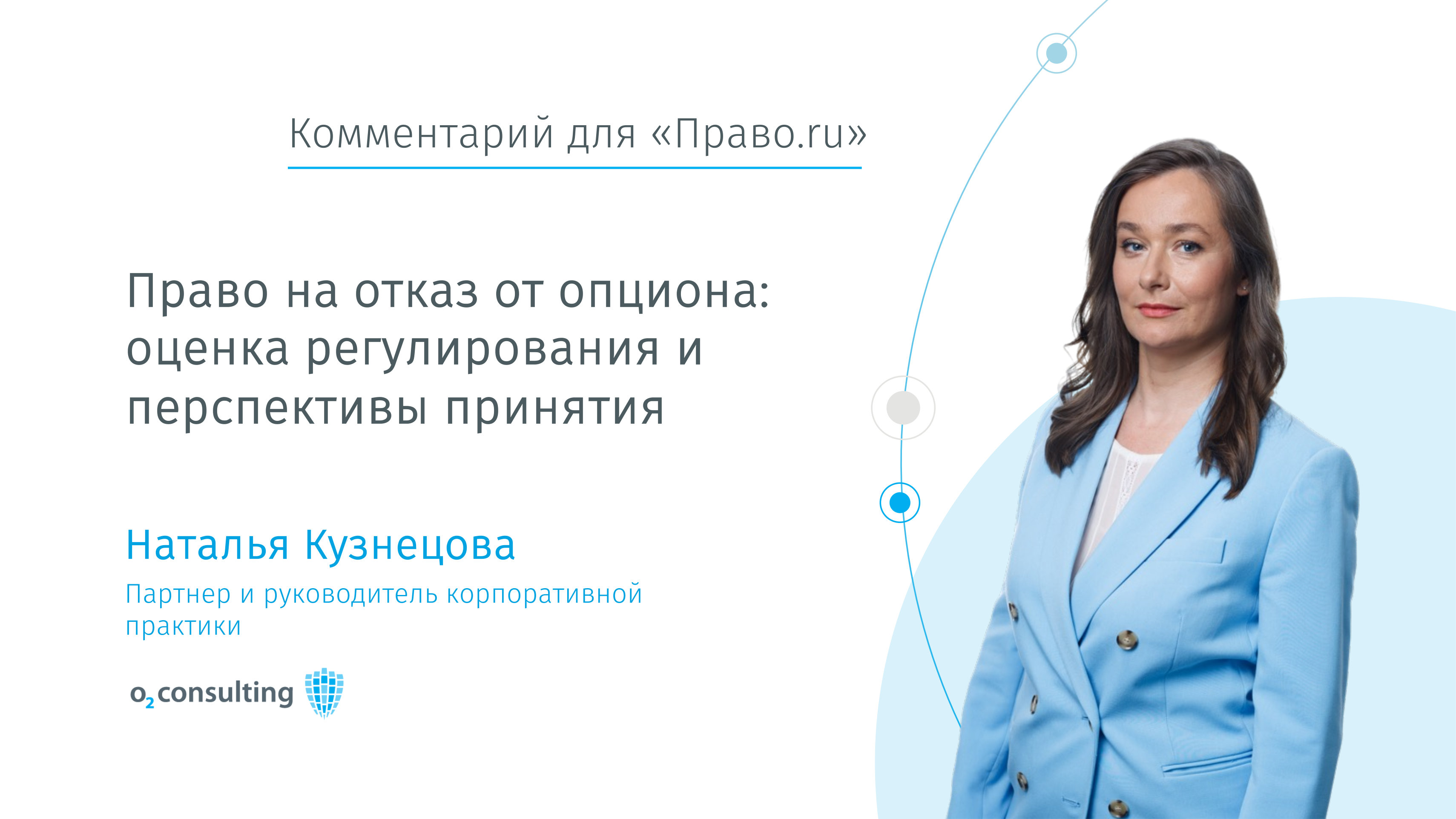 Наталья Кузнецова, партнер, руководитель Корпоративной и M&A практики O2 Consulting, дала «Право.ру» комментарий, в котором поделилась своим мнением о природе законопроекта и о перспективах его принятия.